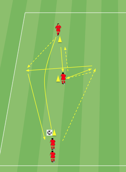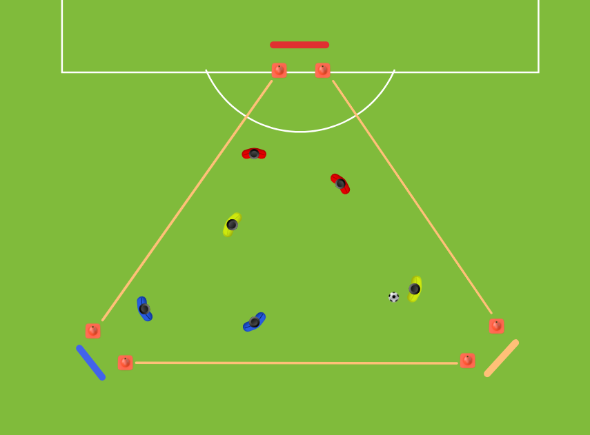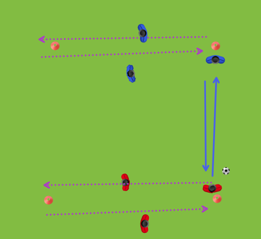 Respecto a la conducción, puedes variar la colocación de los conos iniciales. También puedes añadir elementos para que el jugador realice acciones técnicas. Por ejemplo, vallas pequeñas para obligarle a pasar el balón por encima o a realizar autopase.